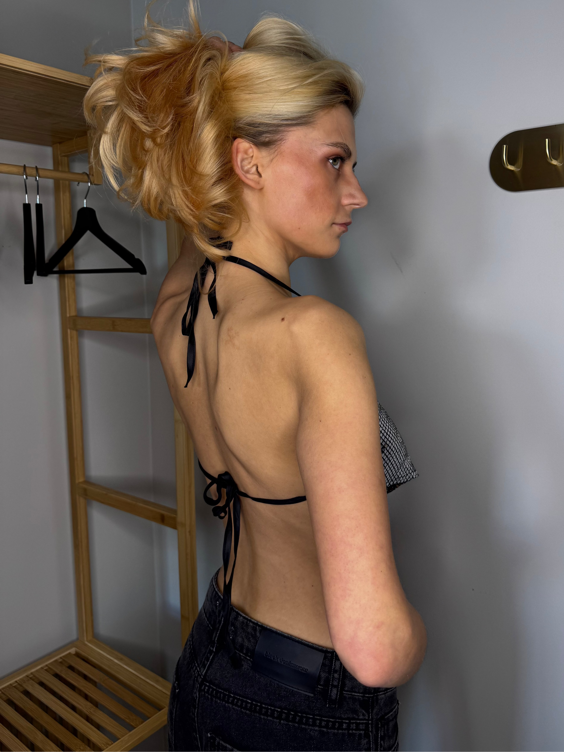 Spīdošs Trijstūra formas CROPTOP- pelēks